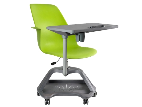 Pupitre escolar de colores con paleta giratoria.